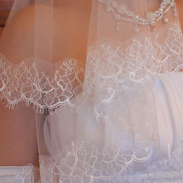 繊細で柔らかなリバーレースをほどこしたミディアムベール。