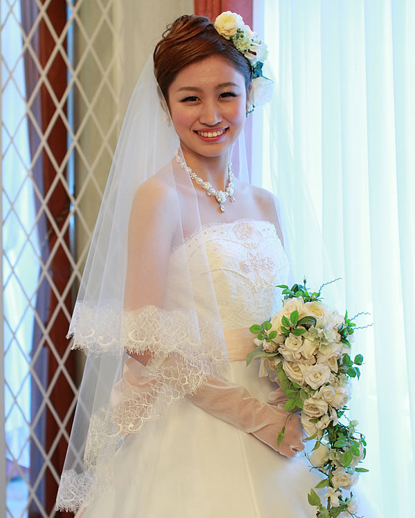 気品あふれるウエディングベールをまとったドレス姿はさらに美しく輝きます。