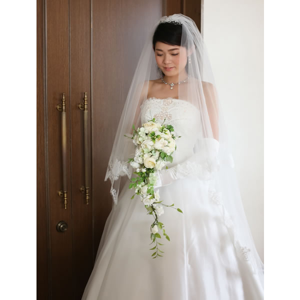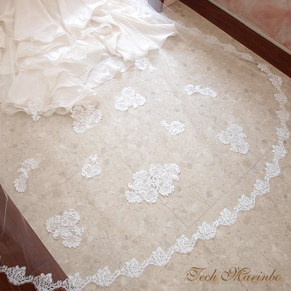 フランス製リバーレースのロング丈ベール。後トレーン部分はリバーレースを優美にあしらいました。豪華でエレガントなロングベールです。