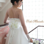 ふんわりと包み込むようなシルエットが、ドレススタイルをより華やかに演出します。お色直しやゲストのお見送りなどにもイメージを変えていただける、ミニローズ柄のボレロ。