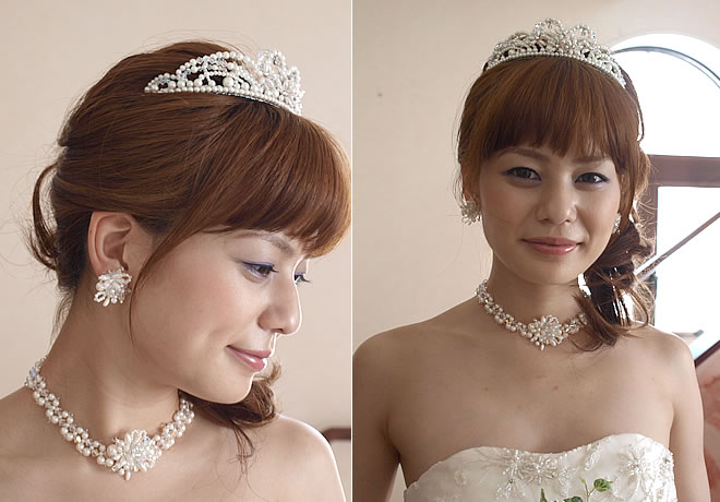 お揃いのチョーカー&イヤリングは上品で愛らしい花嫁様を演出してくれます。