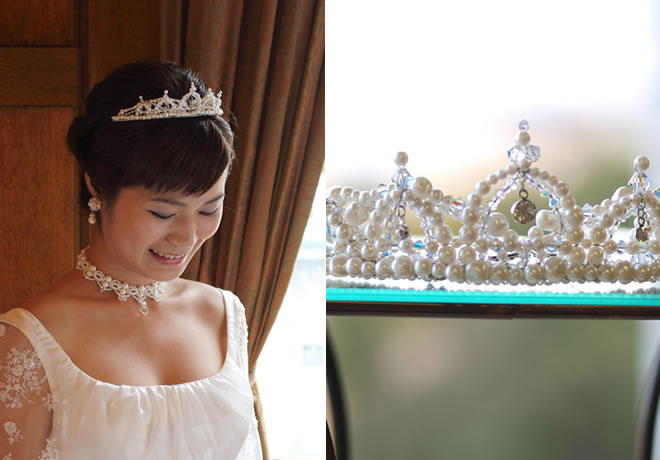 パールやスワロフスキー、ダイヤストーンを使用したクラシカルなティアラです。