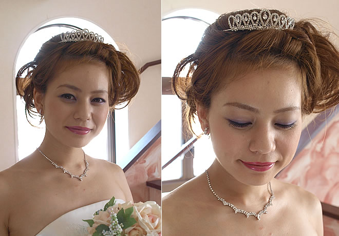 ラインストーンの小さめティアラはドレスを選ばず合わせて頂きやすいデザインです。シンプルながらも揺れ動くダイヤストーンが輝きを放ち、お顔周りを華やかに。