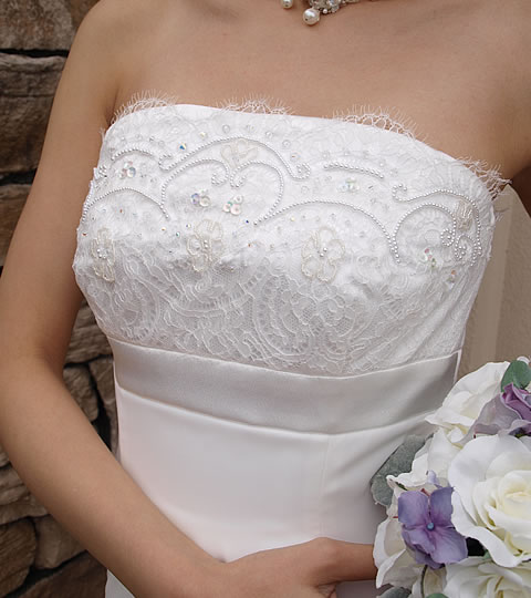 胸元のレースはリバーレースの中でも極めて繊細なレースを使用し、